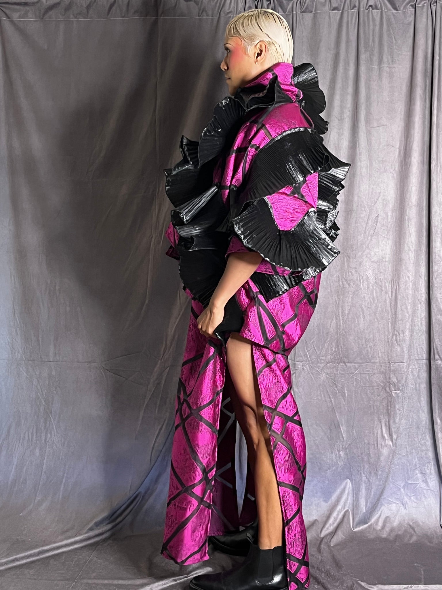 Made with the same fabric as the Verosa tabard, it has sections of accordion pleated satin for extra pazzaz!