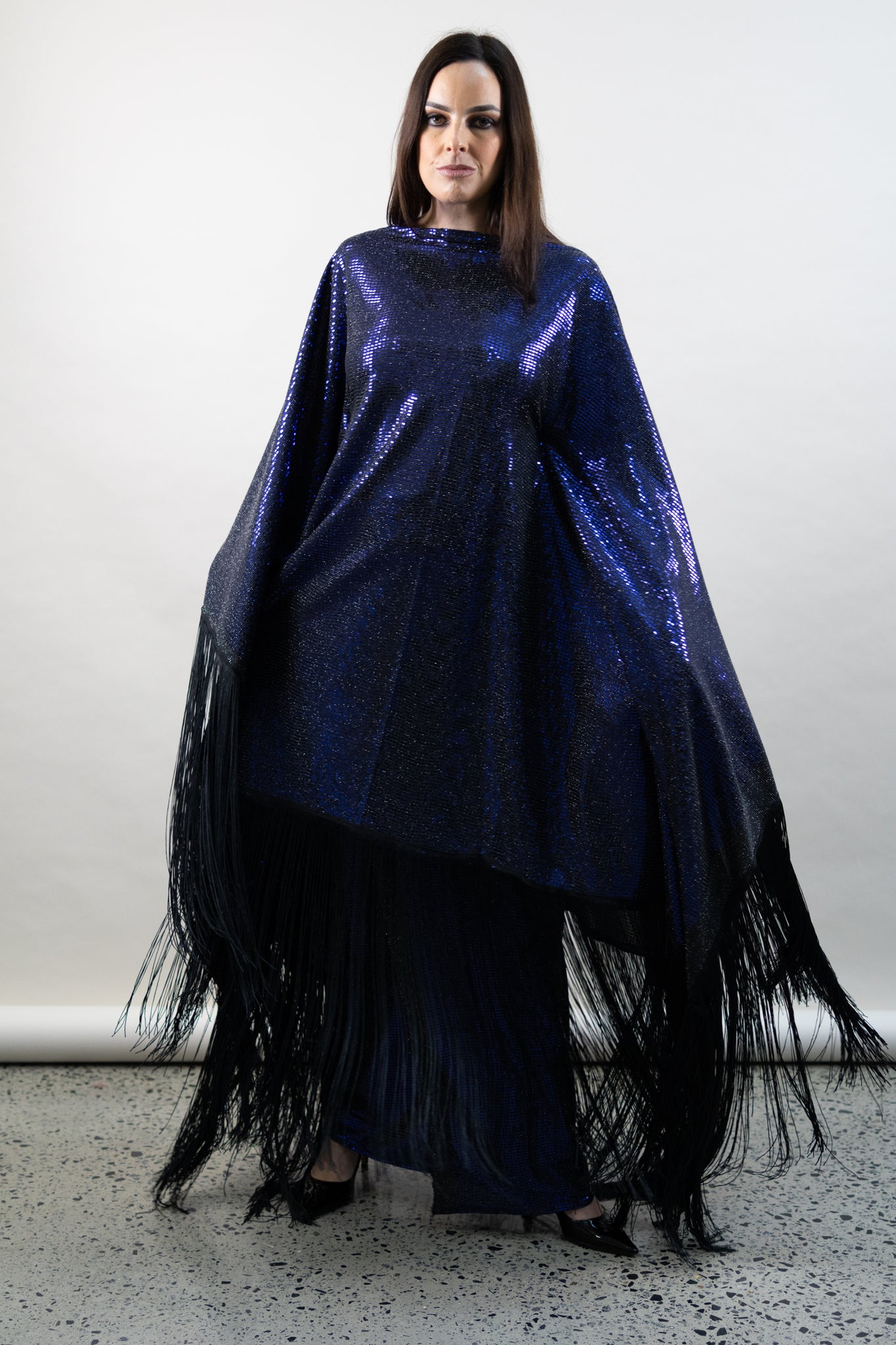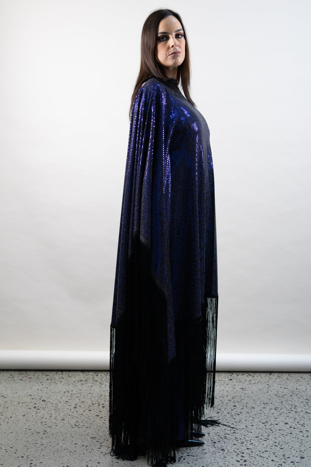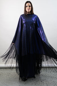 Purple Sequined fringe Kaftan with inside waist ties to cinch in the waist.